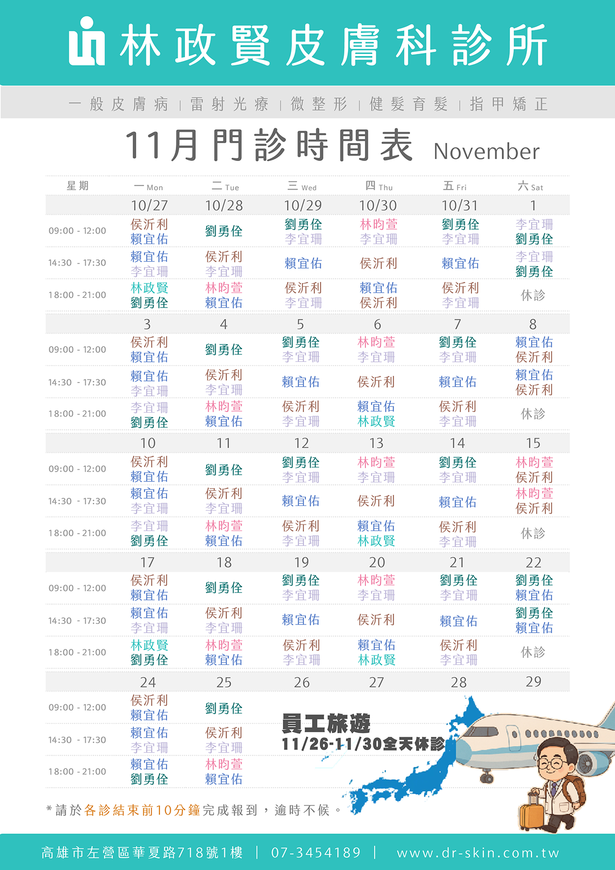 📍11/26(三)-11/30(日)全天休診