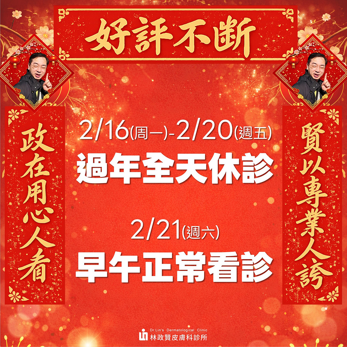 🔸 2/16(除夕)– 2/20(初四) 春節休診