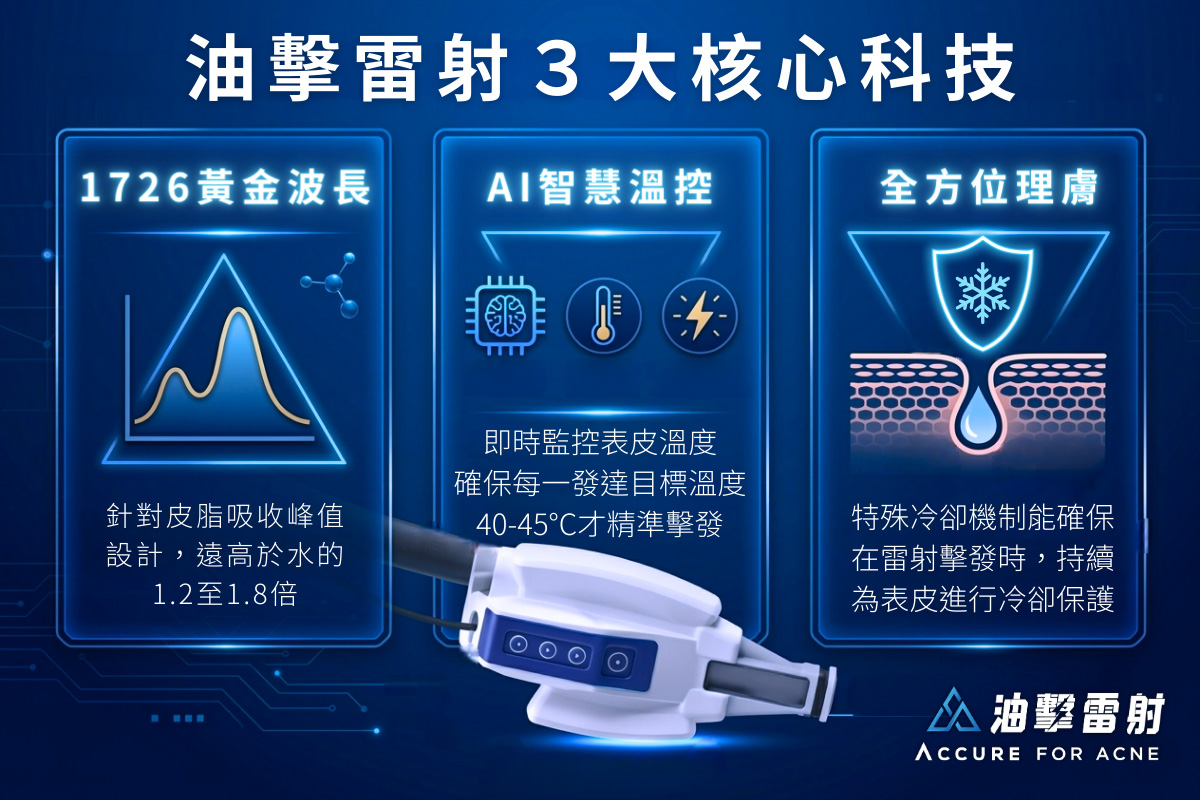 Accure 油擊雷射擺脫反覆爆痘與油光!1726波長精準狙擊皮脂腺,完整療程 90% 拒長痘痘