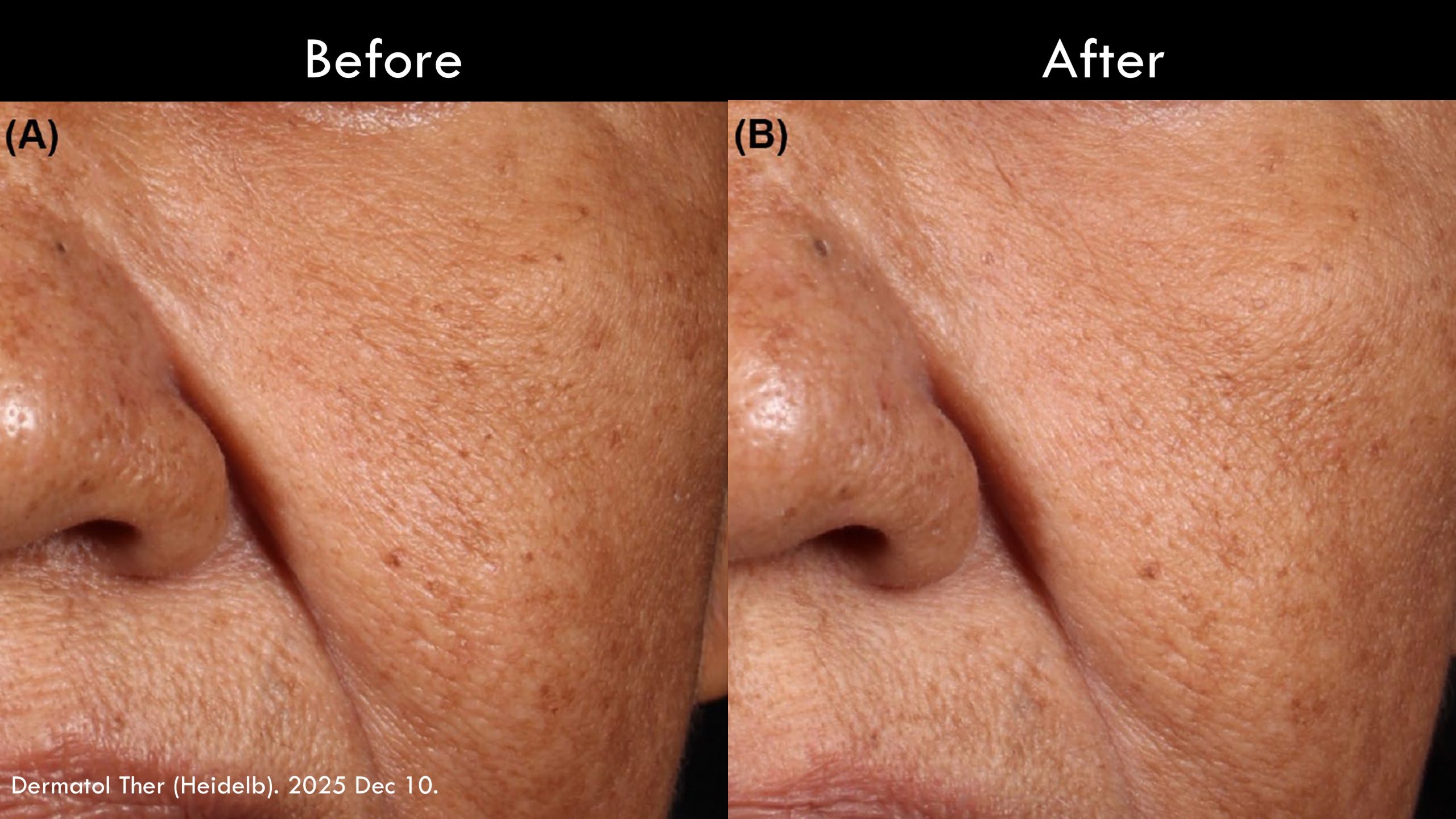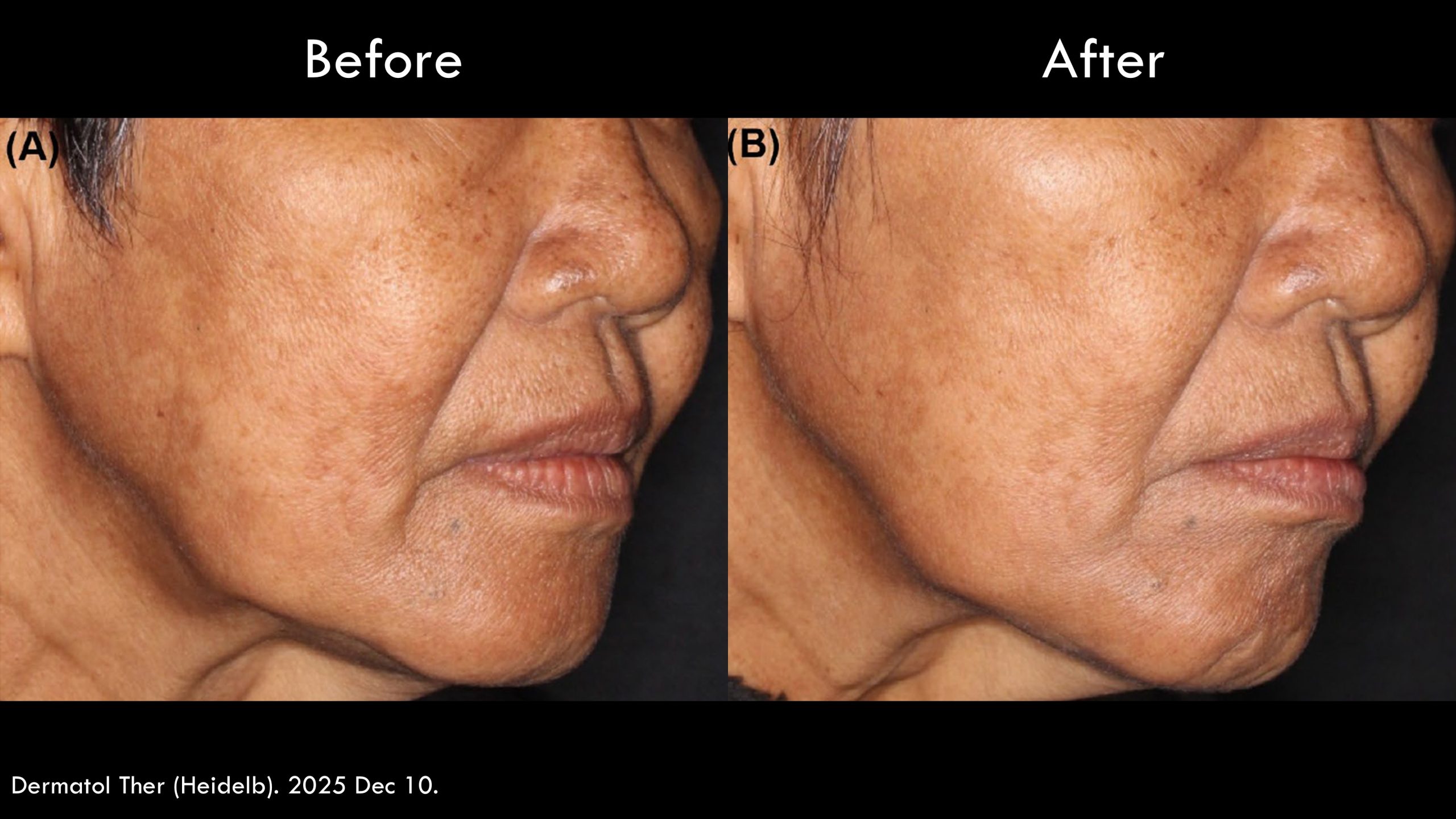 根據 2025 年發表的最新論文,患者在接受三次治療並追蹤六個月後,肝斑均有顯著改善