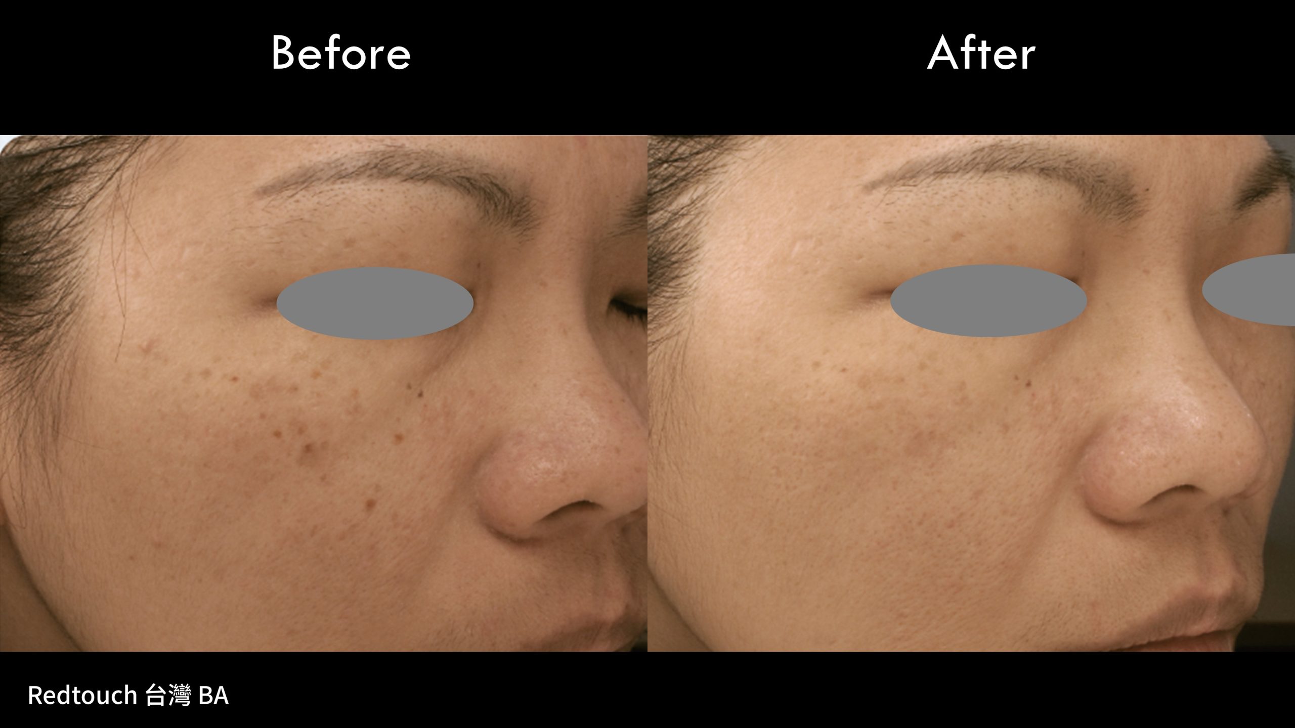 目前台灣衛福部核可 RedTouch Pro 的適應症包含:色素斑痘疤、以及皺紋。以下我們將逐一探討其臨床效果。