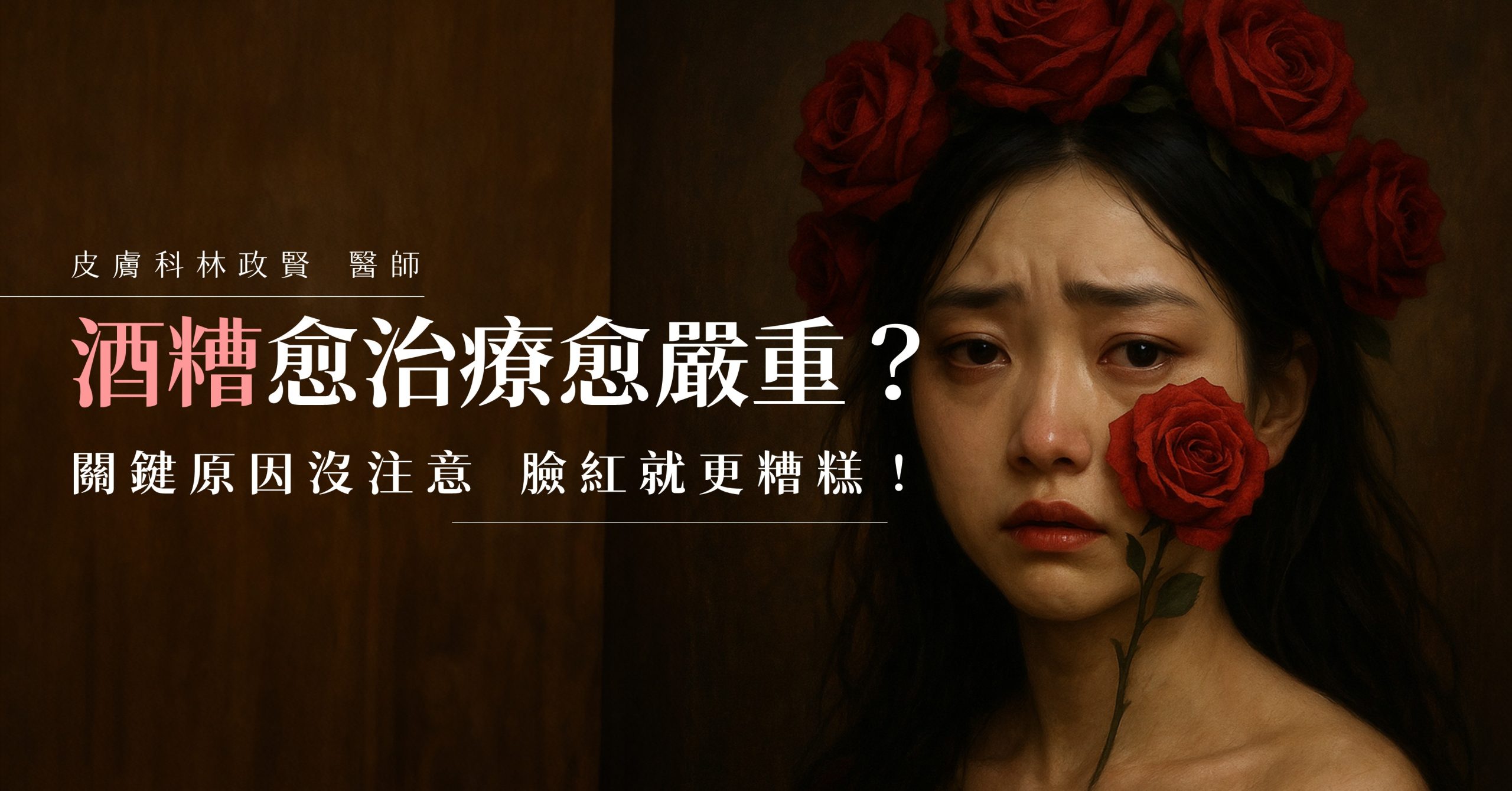 總結來說,酒糟的治療需要有耐心。它需要處理的層面有很多,而且還要有先後順序,有一定的治療先後順序。否則,你如果在發炎、神經、血管都還不是很穩定的狀態下,就去打雷射,那常常會產生悲劇,酒糟會大爆發,臉紅會愈來愈嚴重。